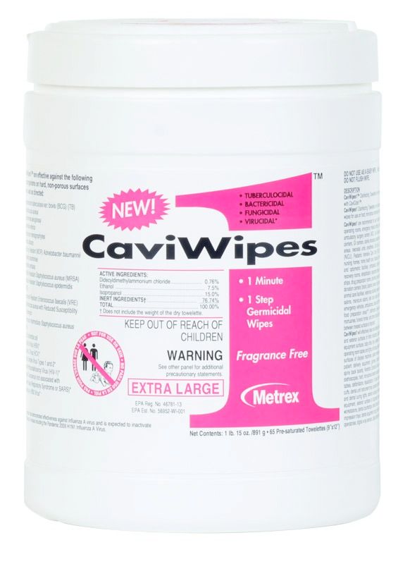 Durable, nonabrasive, low-alcohol CaviWipes1 surface disinfectant/cleaner wipes offer materials compatibility with a kill time of 1 minute for TB and all other labeled organisms.