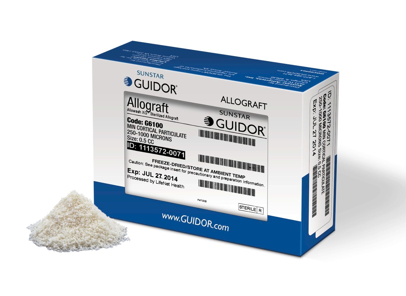 Complimenting the line of GUIDOR Matrix Barriers, GUIDOR Allograft is available in mineralized cortical particulate, mineralized cancellous particulate and 50/50 premixed blend of cortical/cancellous particles.