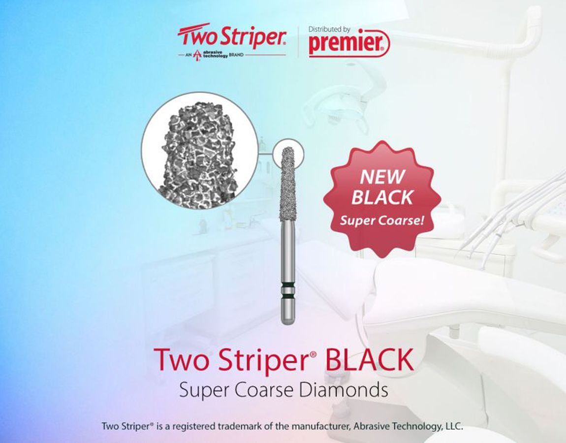 Premier Dental has launched its newest burs, the Two Striper® BLACK diamond burs. These burs are said to be designed for quicker cutting of the tooth and of restorative materials, making them ideal for a variety of indications. BLACK diamond burs are crafted using natural diamonds, lending a unique, coarse sharpness, according to a press release from Premier. The Two Striper BLACK diamond burs are available in 22 different shapes including popular round, barrel, football, and more. These burs utilize Premier’s proprietary PBS® Braze process, which essentially uniformly places crystals in a matrix pattern, fusing them to the shank to ensure they don’t fall out. This entire process is specifically designed to ensure sharpness for longer periods of time, allowing dental professionals to get more value out of their burs, per the press release. Two Striper burs are also designed to eliminate surface inconsistencies, leading to a smoother, reduced-chatter experience. Patients can get out of the chair faster, and clinicians can be confident in the quality of their care. The diamonds are optimal for cutting and abrasion, according to Premier.