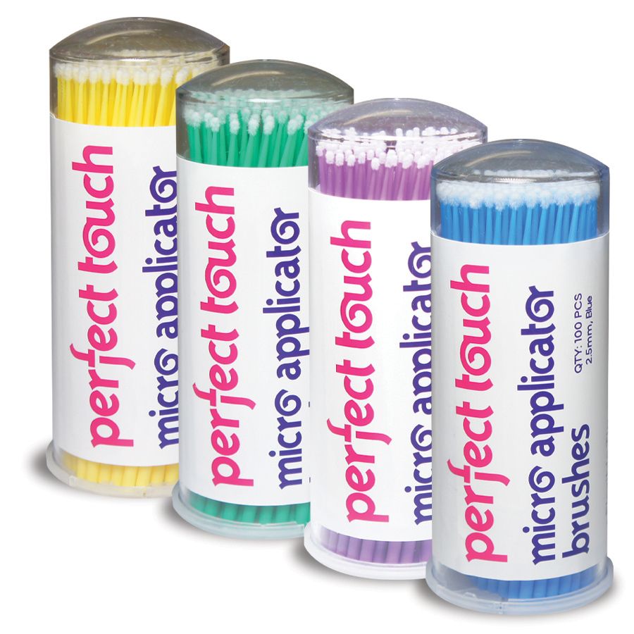 Disposable and intended for one use only, the brushes deliver additional benefits including: a lint-free brush tip; non-absorbent; and optimal access to difficult areas. Perfect Touch Micro Applicator Brushes are available in tubes containing 100 brushes and offered in Purple – Fine, Yellow – Regular, Green – Regular, and Blue – Large.