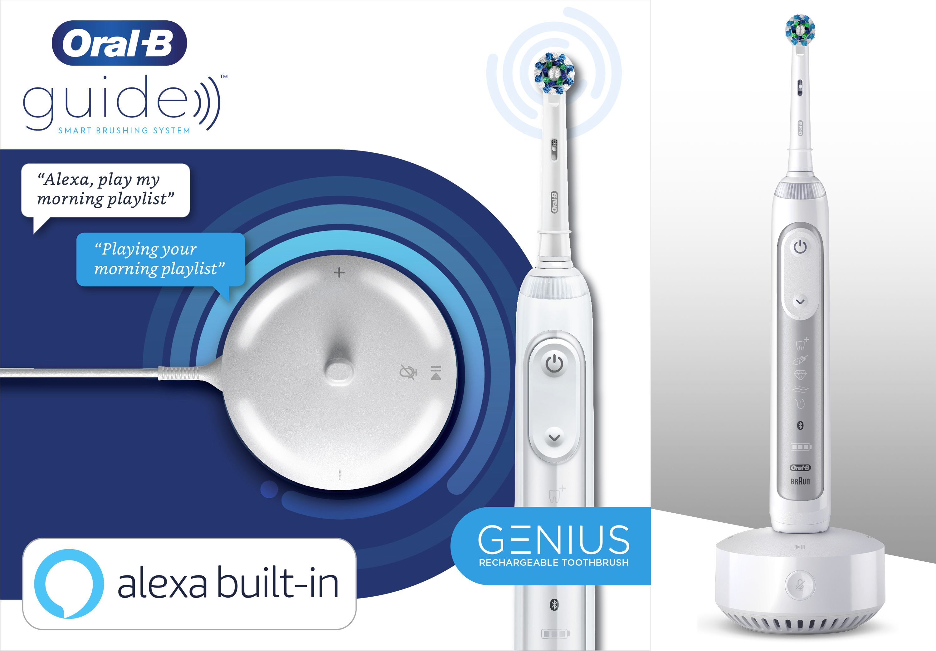 The new Oral-B Guide features Amazon Alexa Built-in Powers.