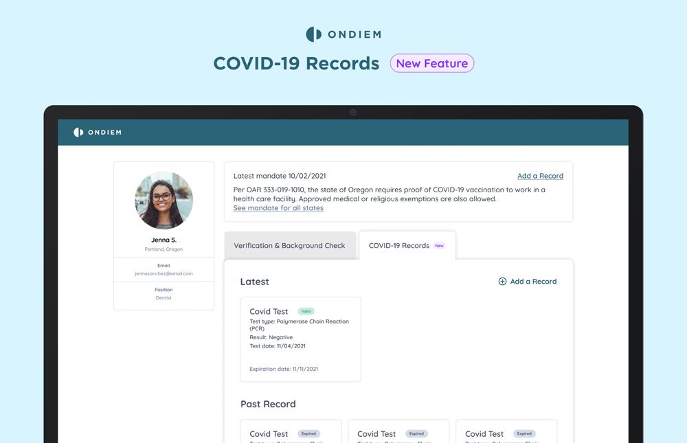 onDiem’s new feature will allow COVID-19 records documentation to help employees stay on top of state mandates.