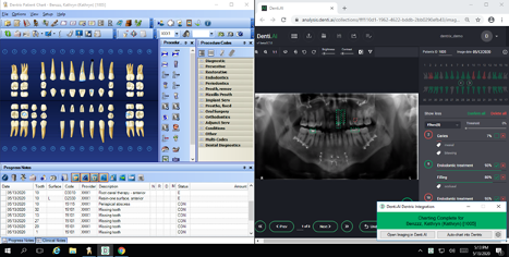 Denti.AI Denti.AIs evidence-based artificial intelligent algorithms automate both the initial diagnostics screen and the charting process with its patent pending Auto-Chart capability. Denti.AIs fully integrated Dentrix solution merges findings across images and exports a final chart with one-click. Denti.AI | denti.ai