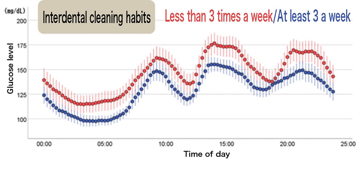 Patients were then encouraged to answer survey questions, ranging from inquiring about how many times a patient brush their teeth in the day to their frequency of dental office visits. Drawing in this data, researchers then tested patients’ blood and urine for HbA1c, fasting blood sugar, insulin, high-sensitivity CRP, and a variety of other glycemic factors. Continuous glucose monitors (CGMs) gave sufficient data to calculate glucose levels in patients that had more frequent interdental cleaning habits versus patients who had less.