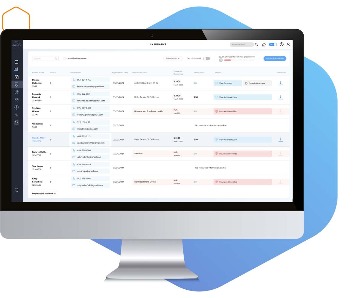 Precheck has a variety of features that aim to provide a whole insurance verification solution for dental practices. Other features include multi-source verification, which pulls in data from clearinghouses, payors, and patient EOBs; code-level feedback, which providing exact answers on which treatments insurance will cover; and a comprehensive coverage breakdown feature that lists benefits, limitations, and other actionable insights for clinicians to take confidence in their decision making.