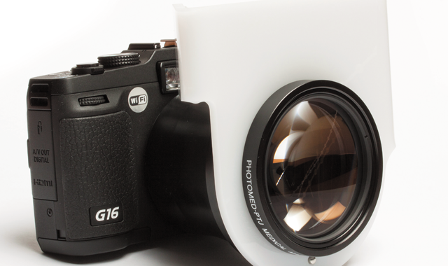 The built-in color monitor on the PhotoMed G16 allows you to precisely frame your subject. Focus and shoot. It's that easy. Proper exposure and balanced even lighting are assured. By using the camera's built-in flash, the amount of light necessary for a proper exposure is guaranteed and PhotoMed's custom closeup lighting attachment redirects the light from the camera's flash to create a balanced, even lighting across the field.