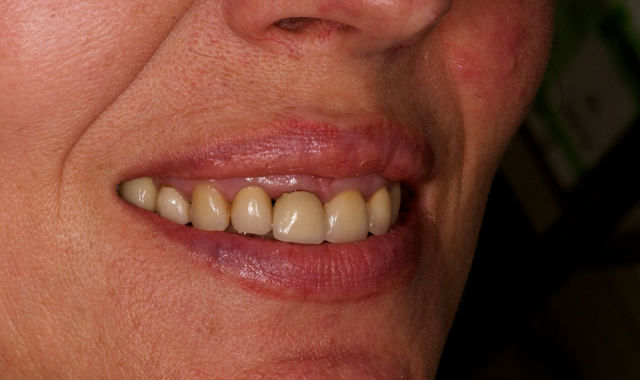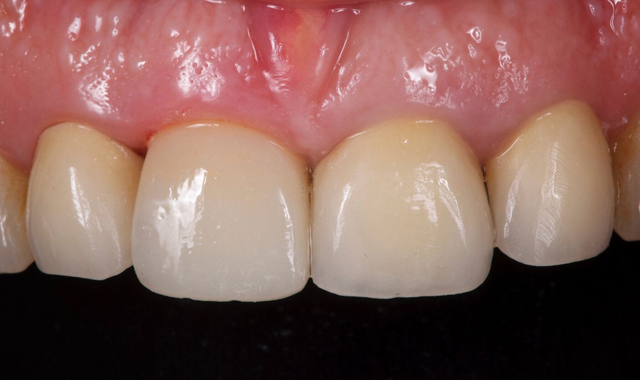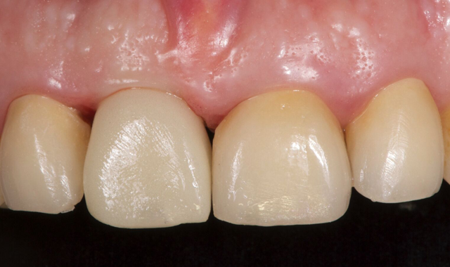 The patient’s smile has a high lip line (Fig. 2), shows all incisors and about 4 mm of gum. The restoration requires a highly esthetic result, as any fault would be clearly visible. Patient biotype was average and not very scalloped.