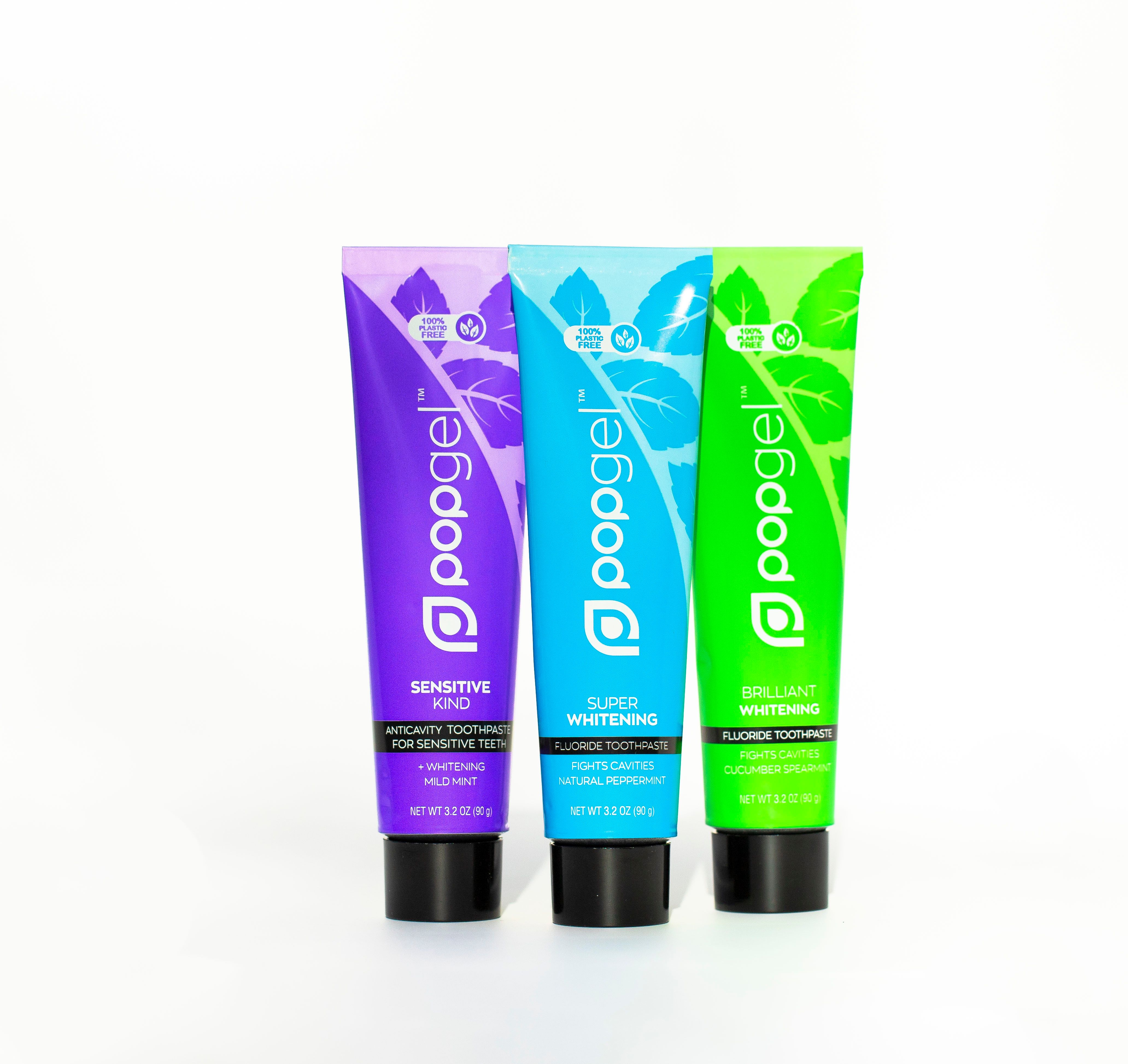 Poppits, LLC has released what are said to be the first 100% plastic-free toothpaste tubes. Popgel toothpaste is available in 3 anti-cavity fluoride flavors, including cooling Cucumber Spearmint Whitening, Peppermint Super Whitening, and Mild Mint Sensitive Kind.