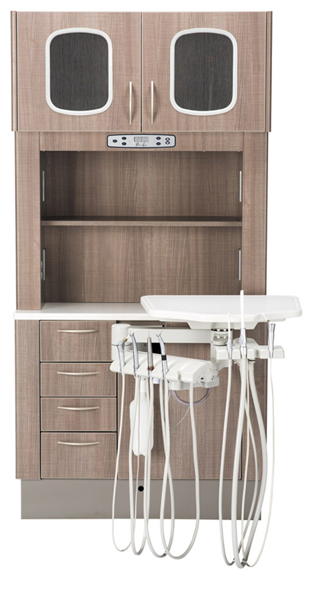 The Centennial 2 Cabinetry line from Pelton & Crane features a system of preconfigured modules that can be tailored to the specific functions within the dental professional’s work environment and easily upgraded to suit a growing practice. Centennial dental cabinets provide several variations of rear-delivery treatment centers, reportedly enabling users to select the right dental cabinet for their specific practice. Multiple delivery units are said to complement this collection to maximize the efficiency and storage capability of these cabinets.