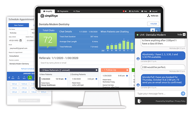 “Many practices are driving patients through multiple channels to the website, from mailers to billboards, to social media ads, etc.,” Dr. Krell says. “Amplify sits on the website and offers a white-glove customer experience and can schedule directly with Dentrix, EagleSoft, and Open Dental platforms for practice management.”