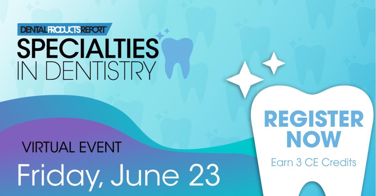 Don’t miss the chance to learn about the latest in endodontics, implants and glass ionomer dental restoratives and sealants, and earn 3 free continuing education (CE) credits along the way, during Dental Products Report’s Specialties in Dentistry Virtual Event on June 23.