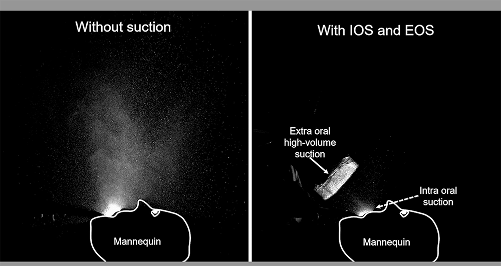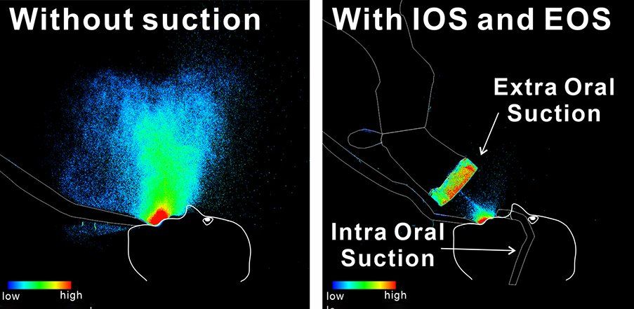 Study conducted at Tohoku University determined that extraoral and intraoral suction can greatly reduce droplet and aerosol spread within the air during dental treatment.
