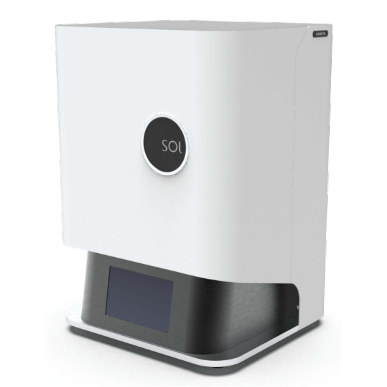 A user-friendly workflow with no calibration requirements makes the SOL ready to use right out of the box, making it ideal for both novice and experienced users. It also features touch-screen operation, a fail-safe vat frame, vat standoffs for longer vat film life, a swivel-hinged UV filter hood, and an easy-to-remove build plate to help increase efficiency, convenience, and performance.