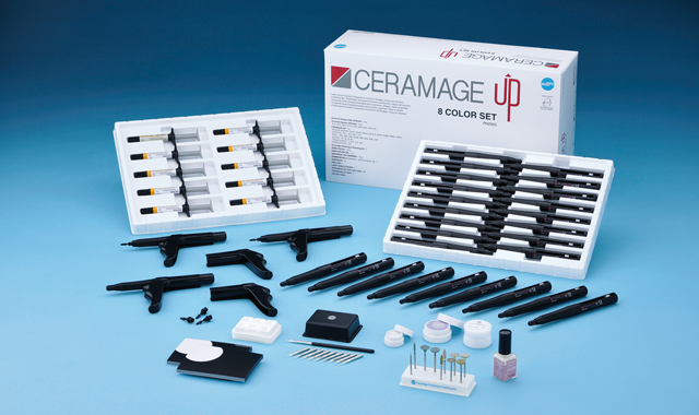 Available in 5g syringes in 17 opaque dentin shades, 21 body shades, 8 cervical shades, 5 incisal shades, 10 gum shades, 5 effect shades, 8 translucent shades, and 2- and 8-color sets, Ceramage UP can be purchased directly from Shofu.