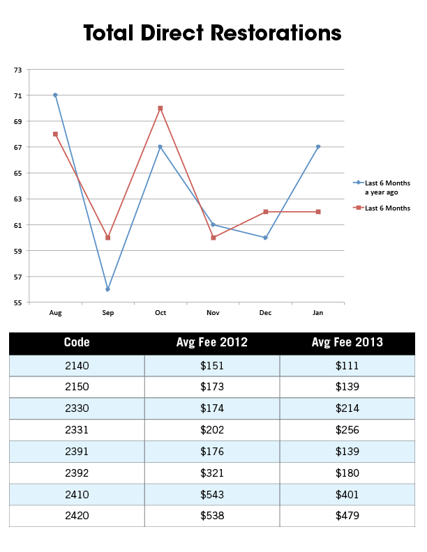 In a joint project between Sikka Software Corporation, Dental Products Report, and Dental Practice Management, the following is the first in a series of reports on common procedures and associated fees in the dental practice. Using Sikka Software’s vast network of data resources, you will find in this article comparisons of not only procedures for the last six months versus a year ago, but also fee comparisons for the same time frames.