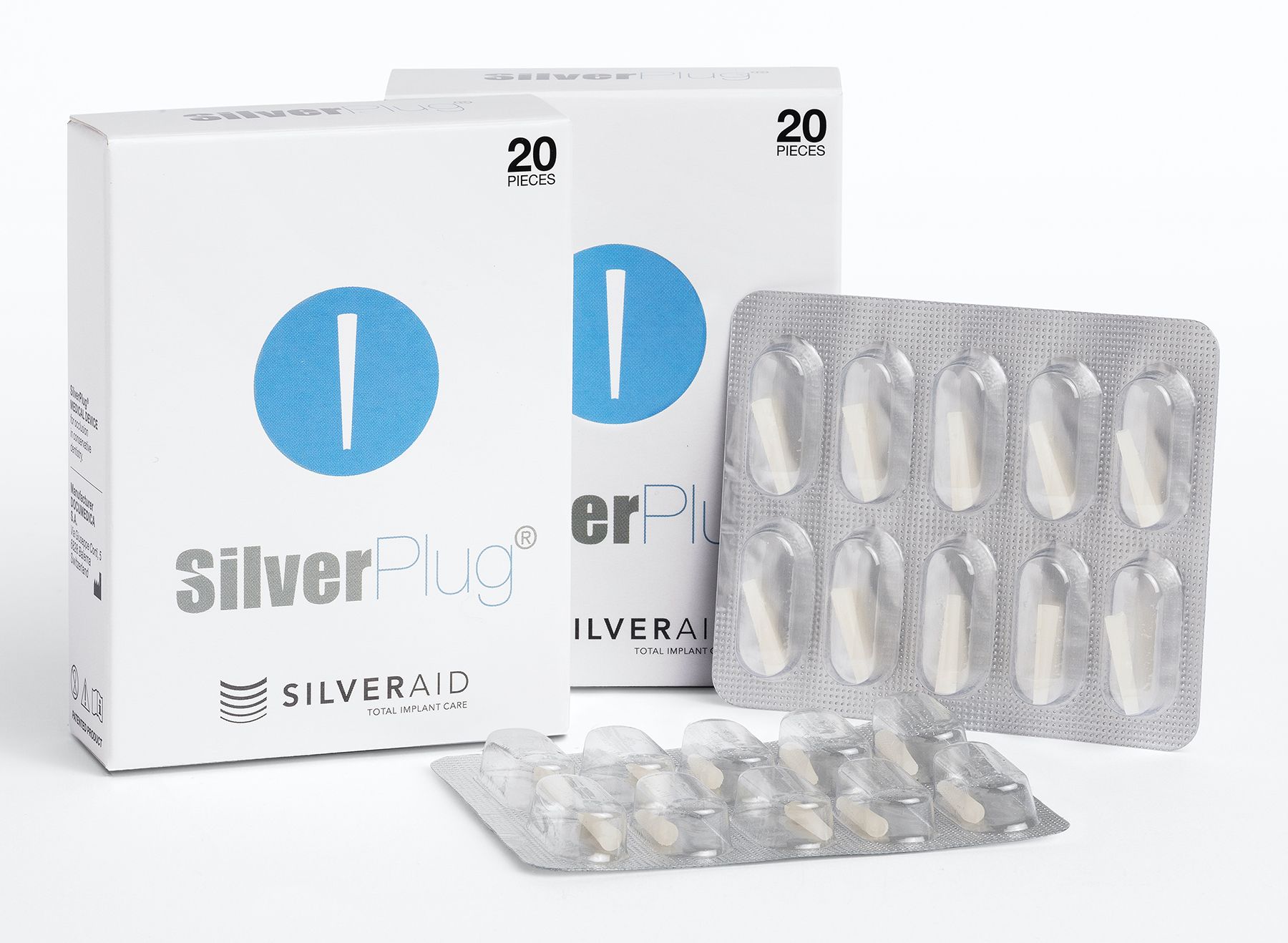 Developed in Switzerland, SilverPlug utilizes silver zeolite, a naturally occurring substance, in a pliable polymer material to allow adaptation to the area over the fixation screw, adapting to the geometry of the space as it is placed. The silver zeolite is a natural antibacterial material that prevents the formation of biofilm and bacteria. Typically, micro-movement of the implant abutment allows bacteria to form inside the implant screw access hole that may cause periodontal disease around the implant.