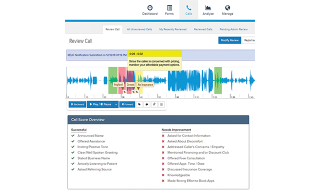 Patient Prism analyzes new patient phone calls, identifies individuals who end the call without booking, and rapid training to win them back-reportedly all within one hour. It is designed to leverage artificial intelligence, experienced call coaches, and quick training videos from industry experts to provide fast, actionable insights designed to generate immediate results.