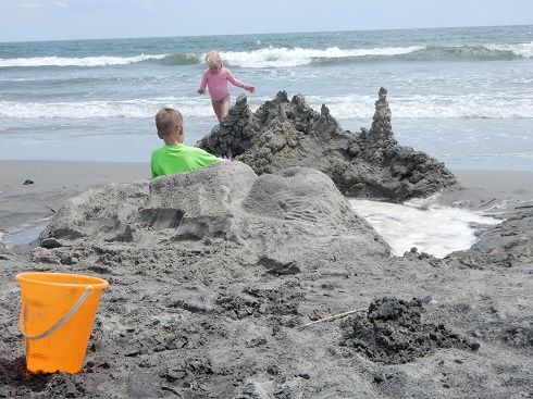 Children building sand castles at Wild Dunes Beach. Photo: Candyce H. Stapen.