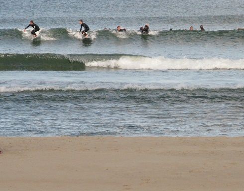 Surfers on Virginia Beach's Grommet Beach. Photo: Candyce H. Stapen.