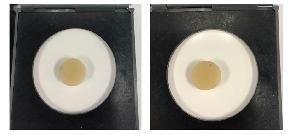 Figure 1. Paradigm MZ100 disk before and after 12 months of clinical staining.