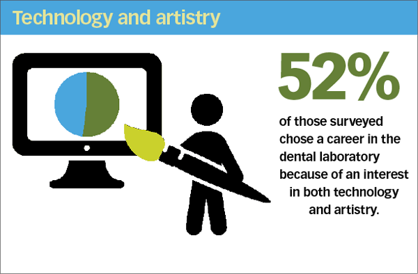 The biggest reason people chose a career in the dental laboratory (52 percent) is because of an interest in both technology and artistry.