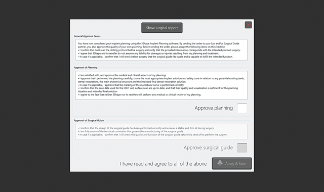 Once the implant placement plan is accepted, there is a quick-and-easy digital guide design step that creates an STL file for milling or 3D printing surgical guides. This software can be purchased as a standalone planning solution or added to an existing 3Shape dongle. One of the really terrific things about Implant Studio is that it puts the planning in the hands of dental labs. This helps lab owners build new relationships and customers. An additional inclusion in the software is a sign-off process that puts the liability of the plan on the surgeon through a design approval process.