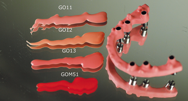 Fig. 5 Gradia Opaque offers three standard shades and the option to create a wide range of variation for each by adding increments of the Gum Opaque Modifier 51.