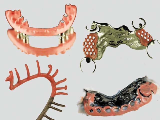 Fig. 1 Opaque products are ideal for the gray masking of several types of fabrications. These include implant supported bars, partial denture frameworks, embedded alloy reinforcement, and attachments positioned closely to surface of tooth and flange.