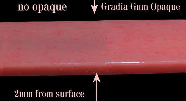 Fig. 2 Gray influence at 2 mm from surface illustrates the need for masking, since many times cases possess even less acrylic than 2 mm.