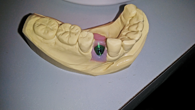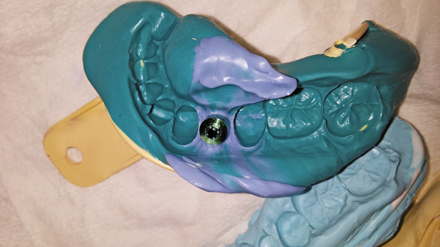 When making the models, Greenberg takes Wonderfill, makes it into a rough bullet shape and presses it in the sides of the implant. He then shapes it with a knife and sprays a separator on the impression. Once it sets, he takes off the Wonderfill. “I have a perfectly shaped soft tissue model,” Greenberg says. “It really makes for a very nice model. I not only use it for crown and bridge cases but for hybrid cases as well.”