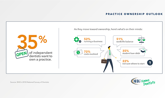 About one-third (35 percent) of independent dental professionals surveyed said they want to own a practice, according to a national research study from Bankers Healthcare Group, a leading provider of financial solutions for healthcare professionals.