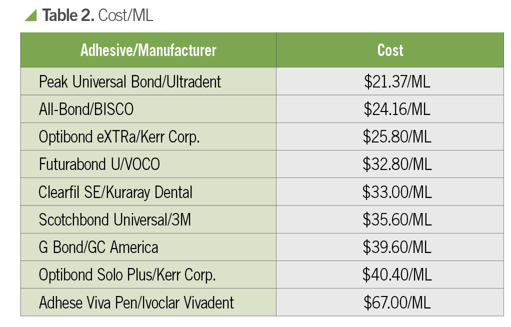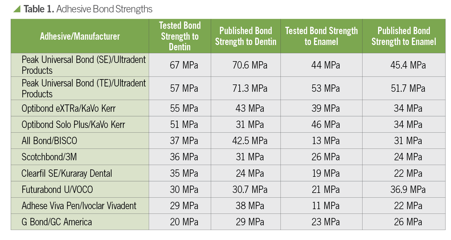An author and researcher tests several bonding agents and compares bond strengths and costs in an effort to help clinicians select which dental materials may be best for their practices.