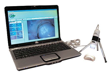Featuring USB output and built-in LED illumination for high magnification, with no additional microscope required, the d-VID USB handheld digital microscope provides exceptionally clear detailed images for viewing and documenting margins, impressions, waxing, dissections, reductions and other procedures. It includes auto-load software that makes it possible to capture high-resolution digital images and digital video clips, as well as measuring capabilities and image manipulation tools that allow the user to add text or graphics for clarity when communicating details to dentists. The camera can be mounted on an included tripod or hand-held for convenience. Though not recommended for shading applications, the camera produces vivid color.