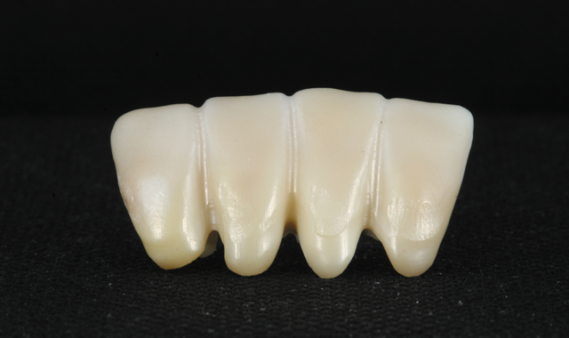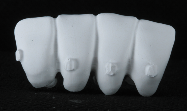 (Fig. 17). The now colored green stage zirconia construction was then sintered using a sintering furnace (e.g. Ivoclar S1) on Program #5, which took approximately three hours and reached a temperature of 1530° C.