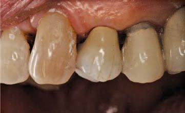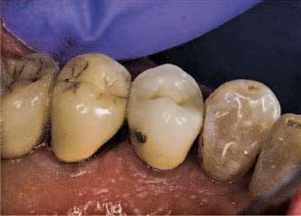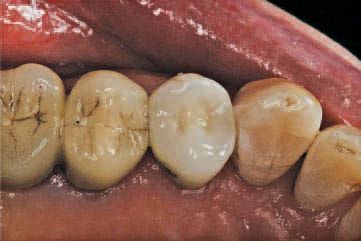 Remove the temporary restoration and all temporary cement residue. Clean the preparation with pumice and water. Rinse thoroughly (Fig. 2 above).