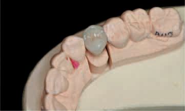 A zirconia crown is prepared and positioned on a model (Fig. 3).