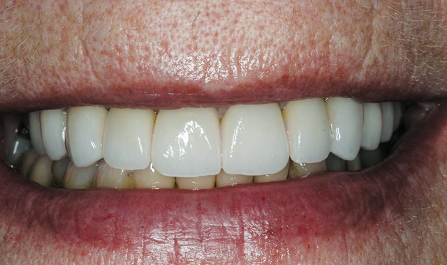 our immediate post-bonding image, we can see the color blending and harmony in the patient’s mouth, as well as the contour and shape of the teeth (Fig. 12).