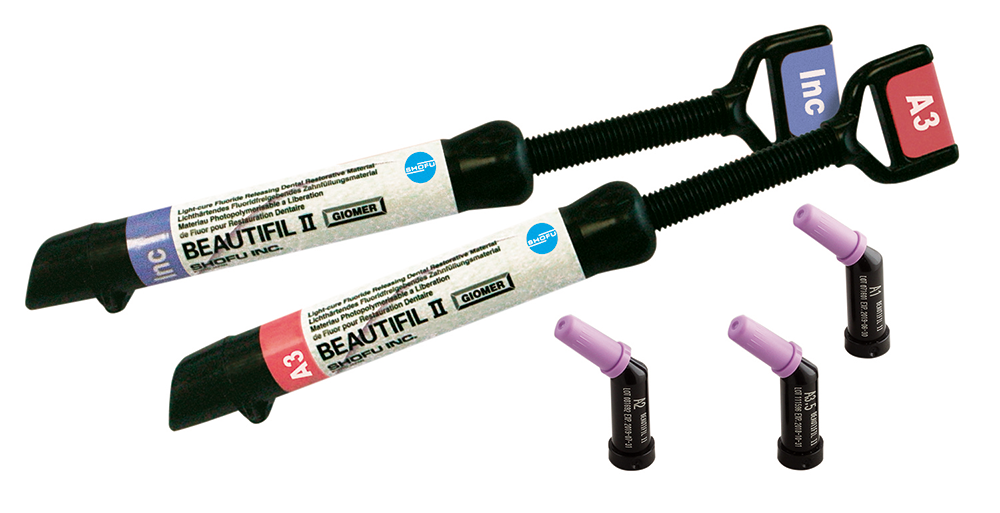 The bioactive Giomer material is offered by Shofu, as their Beautifil line. They offer several types of restoratives, all with unique handling, flow, esthetic, and shrinkage characteristics. I use both Beautifil II and Beautifil II LS, for which the LS stands for “Lustrous Shine, Lasting Strength, and Low Shrink.” Both allow for the perfect sweet spot for composite restorations: