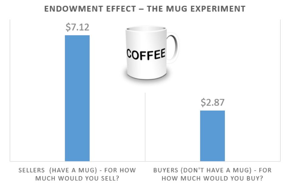 If it’s mine, it’s worth more; if it’s yours; it’s worth less. This is the Endowment Effect, a cognitive bias by which we value something we own more than an equivalent item which belongs to someone else. This kind of thinking is irrational yet it plays out daily in decisions.