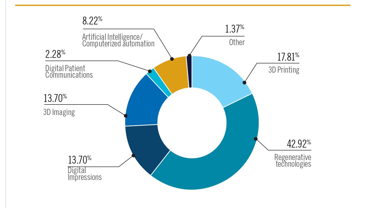 When it comes to the future of dentistry, the results of the 2020 Technology Census show machines might not be the way forward. While many technologies have already changed the industry, and many more are in the process of changing how dentists work and how patients experience their dental visits, the technology dentists see the most revolutionary potential in might not run on electricity or feature artificial intelligence. Instead, 43% of respondents said they see regenerative dental technologies as the most exciting concept on the horizon. The ability to regrow teeth and other damaged structures would certainly change the way most practices operate. 3D printing was the next most popular answer with 18% of clinicians seeing potential there.