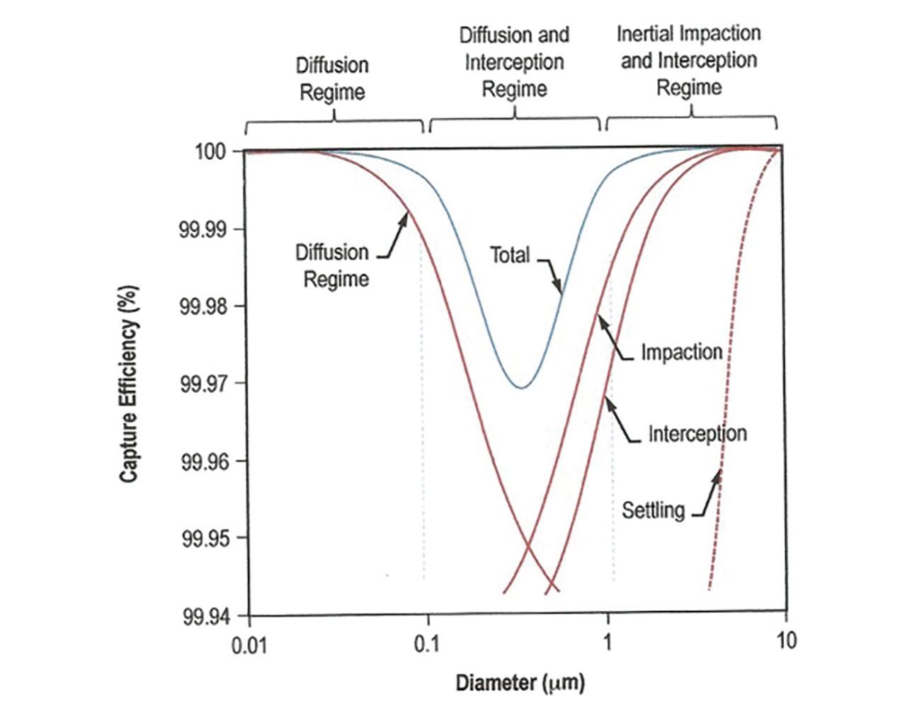 Figure 3: Graph of HEPA Filtration Physics, NASA. KEY: HEPA, high-efficiency particulate air.