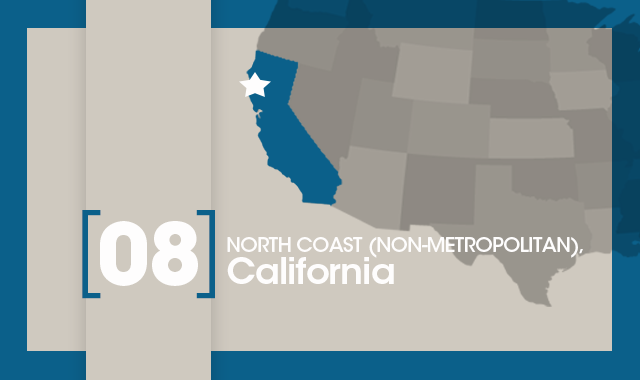Underscoring the reason why money isn’t everything for our rankings, the 150 dental hygienists who live and work in the north coast region of California (specifically, Mendocino County) have the highest salary ($117,630 per year), but the area comes in last place for community health, education and economy. Happily, the state’s low levels of stress, high level of oral health and long life expectancy kept it from sinking even lower in the rankings.