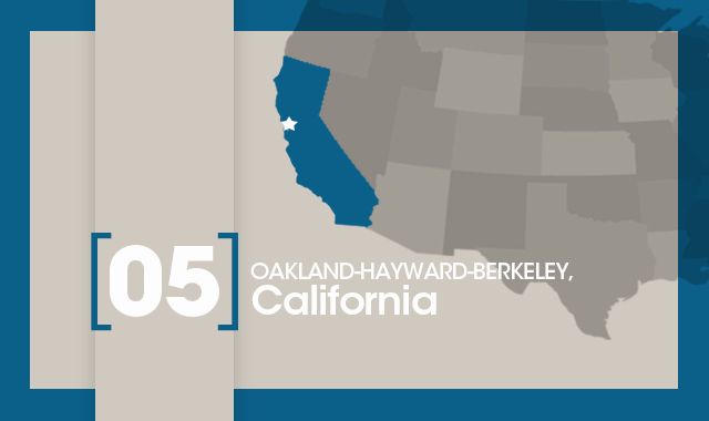 Dental hygienists in the San Francisco-Oakland, California, area earn the fourth-place position for community health, education and economy. Their overall salary ($109,100 per year) puts them in the middle of the pack for pay, but other factors, including the state’s low stress levels, high oral health levels and long life expectancy, helps to solidify its place at No. 4.
