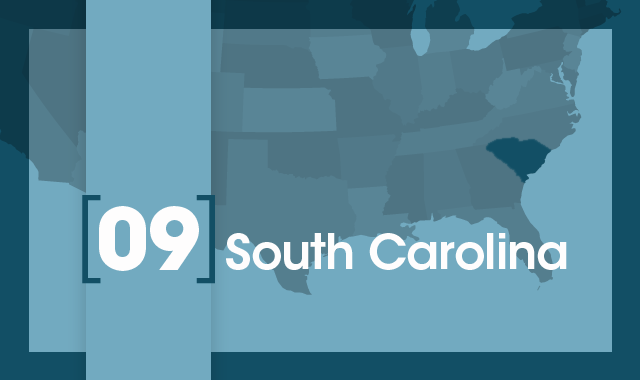 Next up is the Palmetto State. South Carolina is, like Arkansas, somewhat of a mishmash of rankings. First, and possibly most satisfying, is that the average annual salary ($44,680) is the 10th best in the country. The fact that the state is average, in terms of cost-of-living, helps make those dollars last. On the other hand, the state ranks last in terms of education. While the rest of the state’s numbers are not remarkably low, they’re all consistently in the bottom 20 percent of the country, leading to South Carolina’s place at number nine.