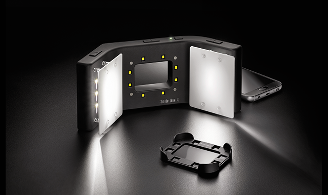 Smile Lite MDP is designed to take advantage of the camera on any smartphone. This is said to be the very first device specially developed for allowing beautiful dental photos with a smartphone. Smile Lite MDP is equipped with three groups of LEDs with four levels of brightness for each one. With the combination of lights and diffusers, clinicians can now reportedly easily take anterior and posterior pictures.