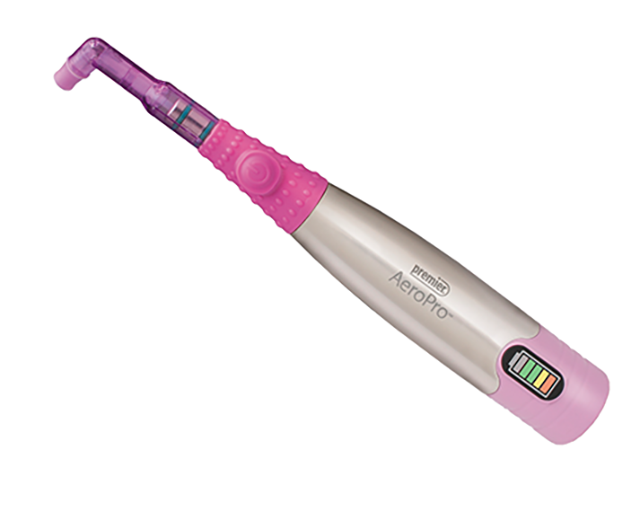 Premier® Dental’s AeroPro is designed to set a new standard in cordless prophy systems. The lightweight, well-balanced, ergonomic, cordless and pedal-less handpiece is said to enable greater control and mobility while reducing hand and wrist stress. The handpiece features a longer battery life and the ability to accept most types of disposable prophy angles, and it comes in two packaging options.