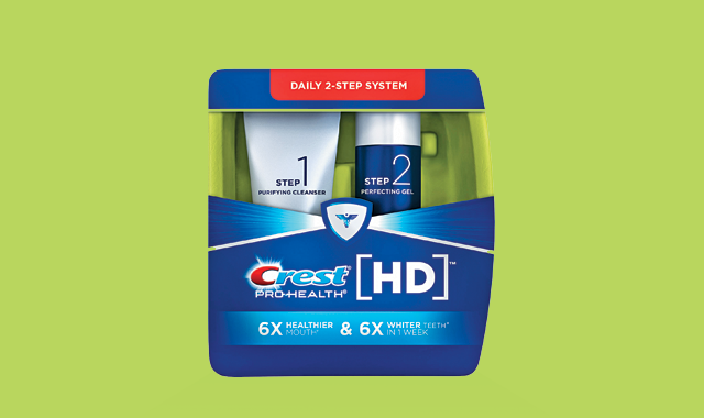 Crest has announced a reportedly breakthrough daily two-step system, Crest PRO-HEALTH [HD], that is designed to be as effective as chlorhexidine on gingival tissues. The daily, two-step toothpaste and gel system is said to deliver gingival health and noticeable whitening benefits. Step 1 includes a stannous fluoride antibacterial toothpaste said to be uniquely formulated to help inhibit growth of plaque bacteria associated with gingivitis. It should be used for one minute. Step 2 is a hydrogen peroxide whitening gel that removes surface stains and should also be used for one minute.