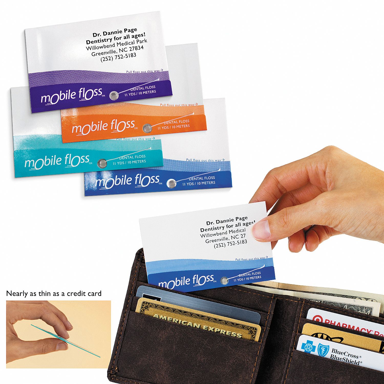 It’s no secret: flossing is crucial in maintaining healthy gums. So why not give your patients the opportunity to floss on the go when it’s convenient for them? Practicon’s Mobile Floss thin business cards dispense 11 yards of waxed floss and fit into a patient’s purse or wallet. Also, they can be customized with up to 35 lines of print at no additional charge or an optional appointment reminder on the back.