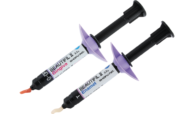 Beautifil II Gingiva and Enamel resin composite is described as a new line of fluoride-releasing, bioactive, nanohybrid restorative materials in pink and white shades. The new Beautifil II shade modules are highly filled, demonstrate optimal flexural and compressive strength, and are said to maintain exceptional color stability before and after curing, exhibit high luster and, similarly to the original Beautifil II, offer clinically vetted Giomer benefits-the ability to release and recharge fluoride, inhibit plaque build-up and neutralize acids.