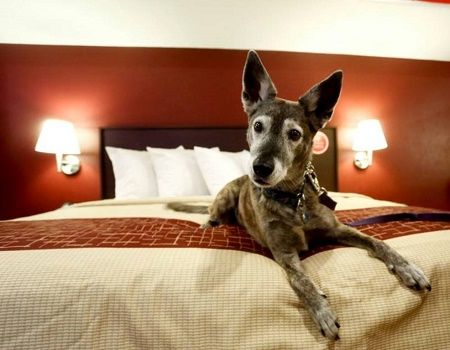 A dog enjoying his stay at a Red Roof Inn. Photo courtesy of Red Roof Inn.